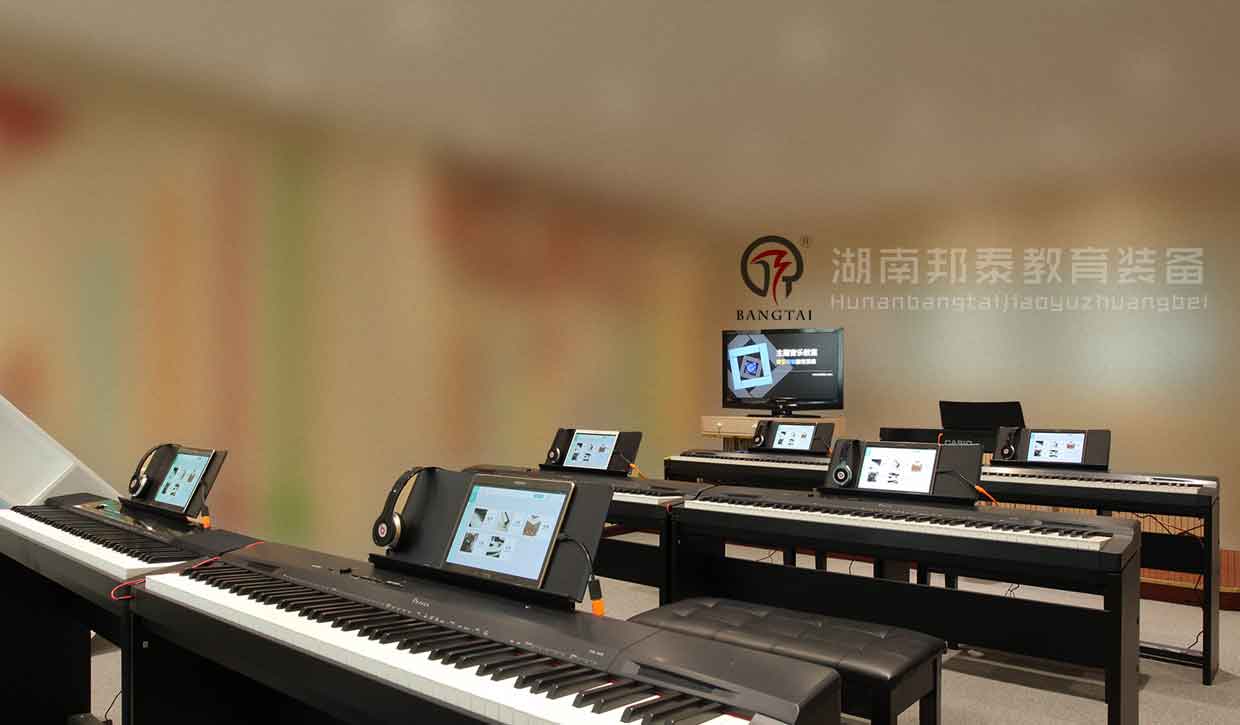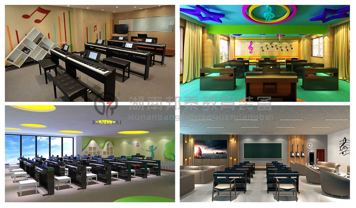 湖南邦泰教育裝備有限公司的音樂教室首先要配備有一套音樂欣賞與表達(dá)設(shè)備,音響、調(diào)音臺、功放、話筒、五線譜電教板、等多媒體相關(guān)設(shè)備必不可少,與此同時,硬件的配置少不了軟件資源的支撐,所以要配備音樂歌曲資源和多媒體教學(xué)軟件(軟件視小、初、高不同階段,配置不同軟件)。