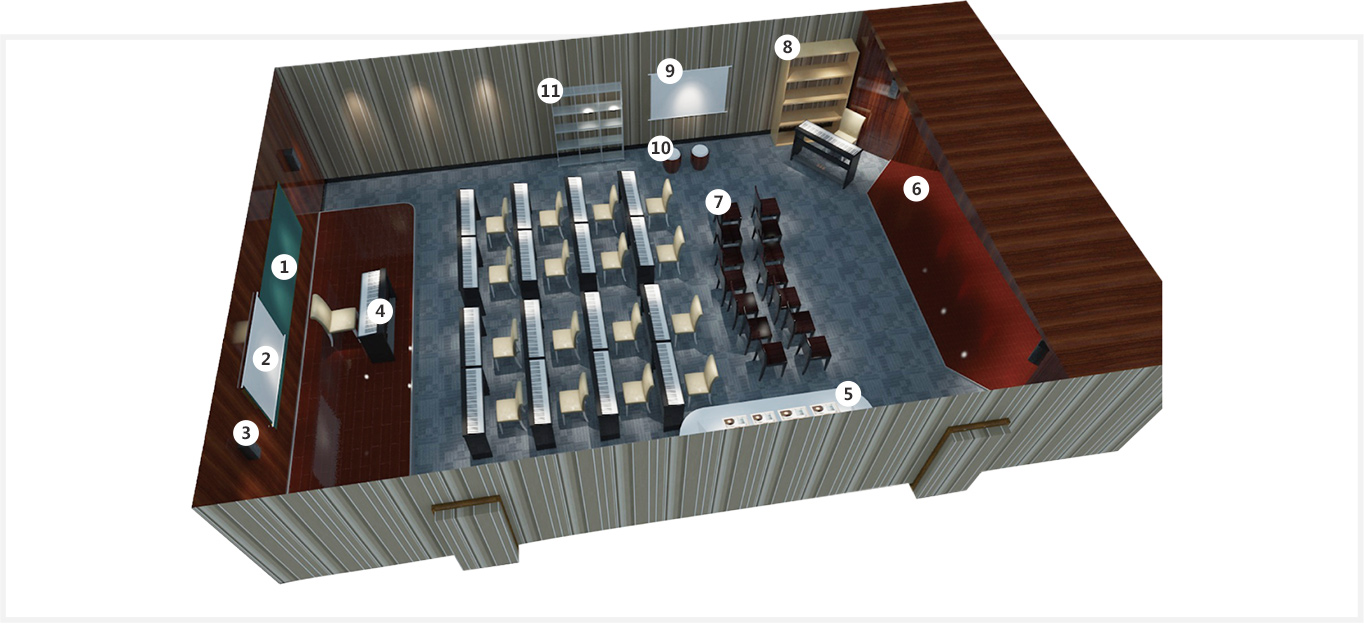 數(shù)字化音樂教室是由一些專業(yè)的音樂設(shè)備,和專業(yè)的系統(tǒng)平臺構(gòu)成一個一體化的音樂教室。利用先進(jìn)信息技術(shù)手段和全新的教學(xué)方法,以學(xué)習(xí)為中心,互動為基礎(chǔ)的全新概念的專業(yè)化教室。在數(shù)字化音樂教室里,每個學(xué)生都有自己的教學(xué)終端,所有的學(xué)生都可以看到自己顯示屏中播放的內(nèi)容、與教師互動,可更加清楚明確的完成相關(guān)教學(xué)任務(wù),相比傳統(tǒng)課堂,這樣的師生互動更具有針對性,更利于教學(xué)活動的開展。